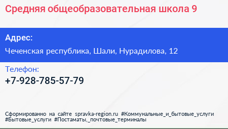 Средняя общеобразовательная школа №9 по адресу Чеченская республика, Шали, Нурадилова, 12 в дальнейшем Организация, размещена в следующих категориях:
