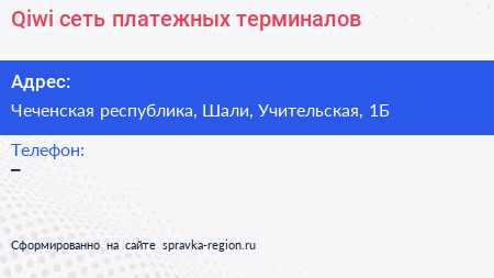 Qiwi, сеть платежных терминалов по адресу Чеченская республика, Шали, Учительская, 1Б в дальнейшем Организация, размещена в следующих категориях: