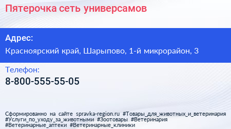 Пятерочка, сеть универсамов по адресу Красноярский край, Шарыпово, 1-й микрорайон, 3 в дальнейшем Организация, размещена в следующих категориях: