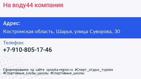 На воду44, компания по адресу Костромская область, Шарья, улица Суворова, 30 в дальнейшем Организация, размещена в следующих категориях: