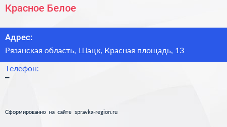 Красное & Белое по адресу Рязанская область, Шацк, Красная площадь, 13 в дальнейшем Организация, размещена в следующих категориях: