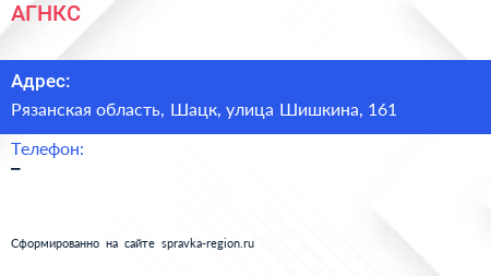 АГНКС по адресу Рязанская область, Шацк, улица Шишкина, 161 в дальнейшем Организация, размещена в следующих категориях: