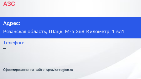 АЗС по адресу Рязанская область, Шацк, М-5 368 Километр, 1 вл1 в дальнейшем Организация, размещена в следующих категориях: