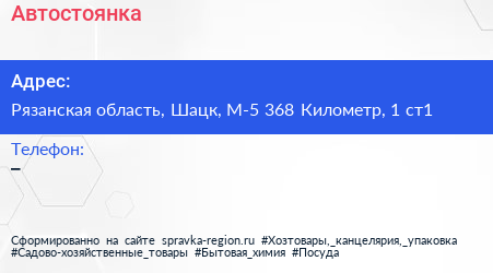 Автостоянка по адресу Рязанская область, Шацк, М-5 368 Километр, 1 ст1 в дальнейшем Организация, размещена в следующих категориях: