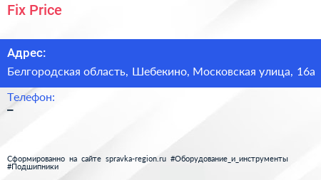 Fix Price по адресу Белгородская область, Шебекино, Московская улица, 16а в дальнейшем Организация, размещена в следующих категориях: