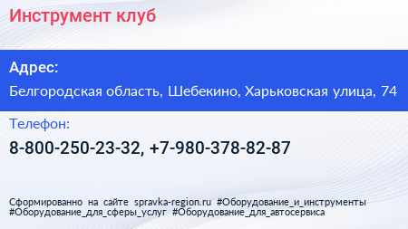 Инструмент клуб по адресу Белгородская область, Шебекино, Харьковская улица, 74 в дальнейшем Организация, размещена в следующих категориях: