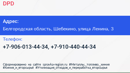 DPD по адресу Белгородская область, Шебекино, улица Ленина, 3 в дальнейшем Организация, размещена в следующих категориях: