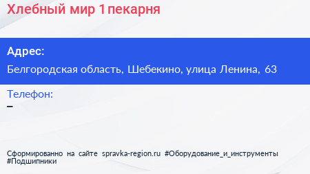 Хлебный мир №1, пекарня по адресу Белгородская область, Шебекино, улица Ленина, 63 в дальнейшем Организация, размещена в следующих категориях:
