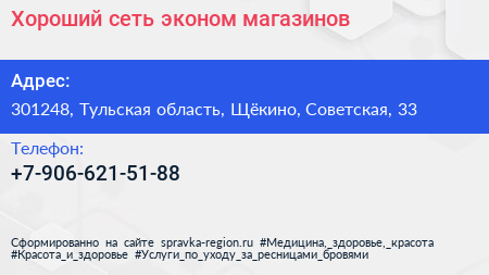 Хороший, сеть эконом-магазинов по адресу 301248, Тульская область, Щёкино, Советская, 33 в дальнейшем Организация, размещена в следующих категориях: