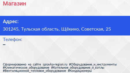 Магазин по адресу 301245, Тульская область, Щёкино, Советская, 25 в дальнейшем Организация, размещена в следующих категориях: