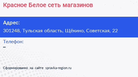 Красное & Белое, сеть магазинов по адресу 301248, Тульская область, Щёкино, Советская, 22 в дальнейшем Организация, размещена в следующих категориях: