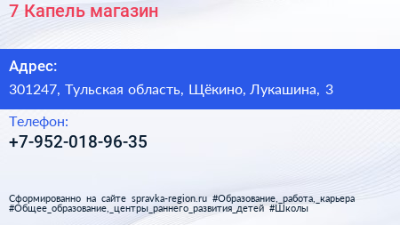 7 Капель, магазин по адресу 301247, Тульская область, Щёкино, Лукашина, 3 в дальнейшем Организация, размещена в следующих категориях: