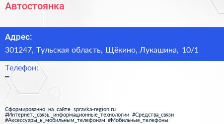 Автостоянка по адресу 301247, Тульская область, Щёкино, Лукашина, 10/1 в дальнейшем Организация, размещена в следующих категориях: