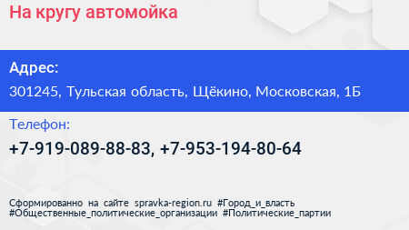 На кругу, автомойка по адресу 301245, Тульская область, Щёкино, Московская, 1Б в дальнейшем Организация, размещена в следующих категориях: