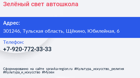 Зелёный свет, автошкола по адресу 301246, Тульская область, Щёкино, Юбилейная, 6 в дальнейшем Организация, размещена в следующих категориях: