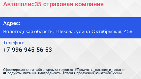 Автополис35, страховая компания по адресу Вологодская область, Шексна, улица Октябрьская, 45в в дальнейшем Организация, размещена в следующих категориях: