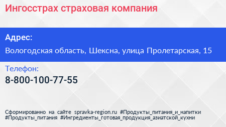 Ингосстрах, страховая компания по адресу Вологодская область, Шексна, улица Пролетарская, 15 в дальнейшем Организация, размещена в следующих категориях: