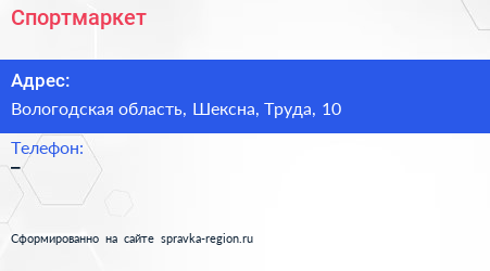 Спортмаркет по адресу Вологодская область, Шексна, Труда, 10 в дальнейшем Организация, размещена в следующих категориях: