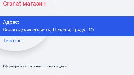 Granat, магазин по адресу Вологодская область, Шексна, Труда, 10 в дальнейшем Организация, размещена в следующих категориях: