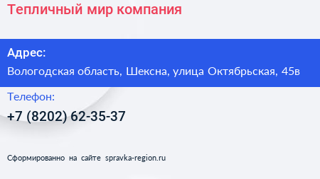 Тепличный мир, компания по адресу Вологодская область, Шексна, улица Октябрьская, 45в в дальнейшем Организация, размещена в следующих категориях: