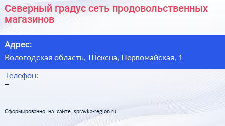 Северный градус, сеть продовольственных магазинов по адресу Вологодская область, Шексна, Первомайская, 1 в дальнейшем Организация, размещена в следующих категориях: