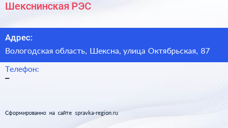 Шекснинская РЭС по адресу Вологодская область, Шексна, улица Октябрьская, 87 в дальнейшем Организация, размещена в следующих категориях: