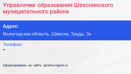 Управление образования Шекснинского муниципального района по адресу Вологодская область, Шексна, Труда, 3а в дальнейшем Организация, размещена в следующих категориях:
