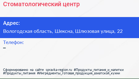 Стоматологический центр по адресу Вологодская область, Шексна, Шлюзовая улица, 22 в дальнейшем Организация, размещена в следующих категориях: