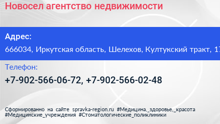 Новосел, агентство недвижимости по адресу 666034, Иркутская область, Шелехов, Култукский тракт, 17 в дальнейшем Организация, размещена в следующих категориях: