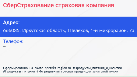 СберСтрахование, страховая компания по адресу 666035, Иркутская область, Шелехов, 1-й микрорайон, 7а в дальнейшем Организация, размещена в следующих категориях: