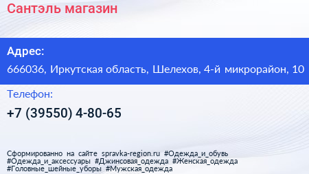 Сантэль, магазин по адресу 666036, Иркутская область, Шелехов, 4-й микрорайон, 10 в дальнейшем Организация, размещена в следующих категориях: