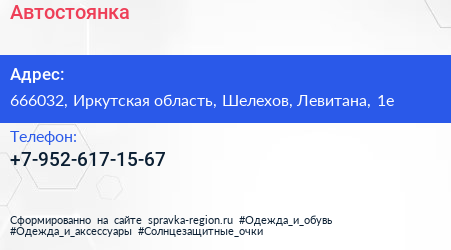 Автостоянка по адресу 666032, Иркутская область, Шелехов, Левитана, 1е в дальнейшем Организация, размещена в следующих категориях: