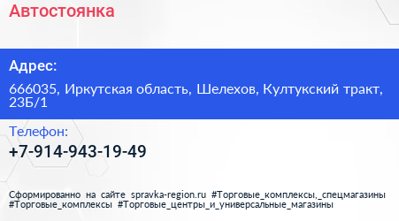 Автостоянка по адресу 666035, Иркутская область, Шелехов, Култукский тракт, 23Б/1 в дальнейшем Организация, размещена в следующих категориях: