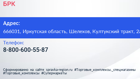 БРК по адресу 666031, Иркутская область, Шелехов, Култукский тракт, 2а в дальнейшем Организация, размещена в следующих категориях: