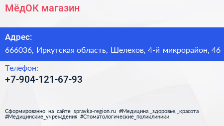 МёдОК, магазин по адресу 666036, Иркутская область, Шелехов, 4-й микрорайон, 46 в дальнейшем Организация, размещена в следующих категориях: