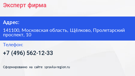 Эксперт, фирма по адресу 141100, Московская область, Щёлково, Пролетарский проспект, 10 в дальнейшем Организация, размещена в следующих категориях: