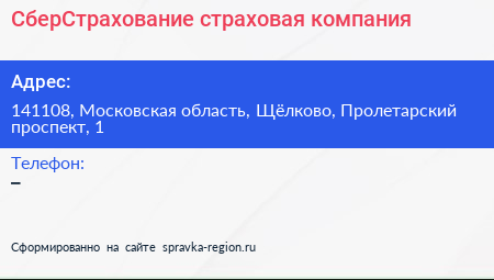 СберСтрахование, страховая компания по адресу 141108, Московская область, Щёлково, Пролетарский проспект, 1 в дальнейшем Организация, размещена в следующих категориях: