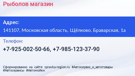 Рыболов, магазин по адресу 141107, Московская область, Щёлково, Браварская, 1а в дальнейшем Организация, размещена в следующих категориях: