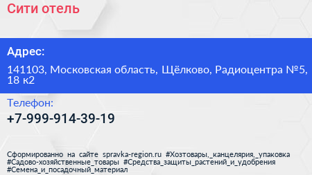 Сити, отель по адресу 141103, Московская область, Щёлково, Радиоцентра №5, 18 к2 в дальнейшем Организация, размещена в следующих категориях: