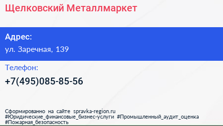 Щелковский Металлмаркет по адресу ул. Заречная, 139 в дальнейшем Организация, размещена в следующих категориях: