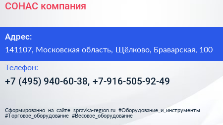 СОНАС, компания по адресу 141107, Московская область, Щёлково, Браварская, 100 в дальнейшем Организация, размещена в следующих категориях: