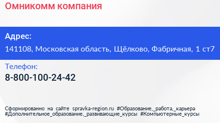 Омникомм, компания по адресу 141108, Московская область, Щёлково, Фабричная, 1 ст7 в дальнейшем Организация, размещена в следующих категориях: