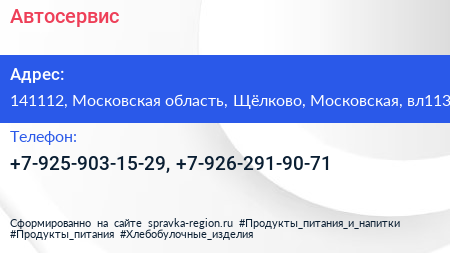 Автосервис по адресу 141112, Московская область, Щёлково, Московская, вл113 в дальнейшем Организация, размещена в следующих категориях: