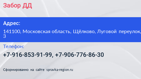 Забор ДД по адресу 141100, Московская область, Щёлково, Луговой переулок, 3 в дальнейшем Организация, размещена в следующих категориях: