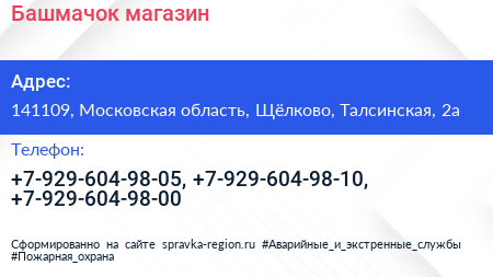Башмачок, магазин по адресу 141109, Московская область, Щёлково, Талсинская, 2а в дальнейшем Организация, размещена в следующих категориях: