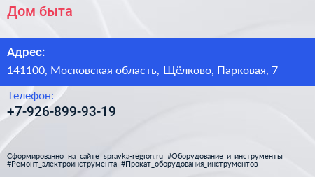 Дом быта по адресу 141100, Московская область, Щёлково, Парковая, 7 в дальнейшем Организация, размещена в следующих категориях: