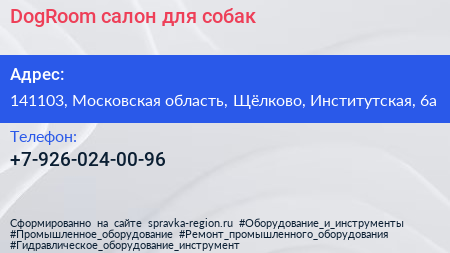 DogRoom, салон для собак по адресу 141103, Московская область, Щёлково, Институтская, 6а в дальнейшем Организация, размещена в следующих категориях: