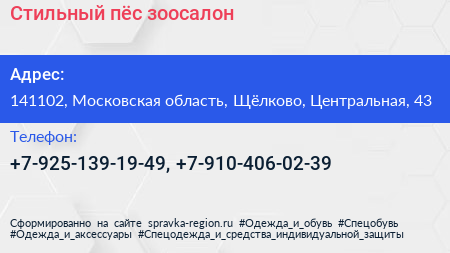 Стильный пёс, зоосалон по адресу 141102, Московская область, Щёлково, Центральная, 43 в дальнейшем Организация, размещена в следующих категориях:
