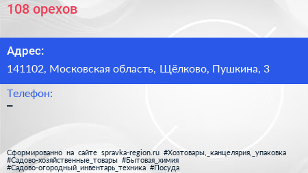 108 орехов по адресу 141102, Московская область, Щёлково, Пушкина, 3 в дальнейшем Организация, размещена в следующих категориях: