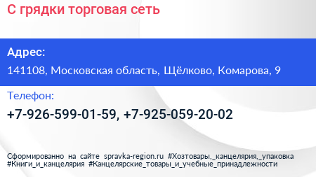 С грядки, торговая сеть по адресу 141108, Московская область, Щёлково, Комарова, 9 в дальнейшем Организация, размещена в следующих категориях: